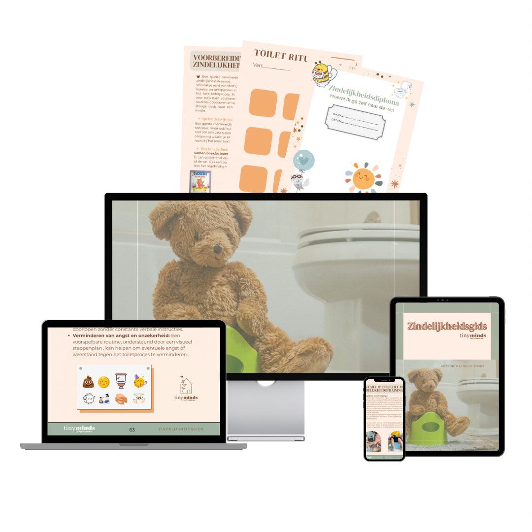Geen gids met beloftes als “zindelijk in drie dagen”, maar een complete, realistische gids die jou ondersteunt bij álle aspecten van zindelijkheidstraining.